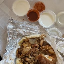 Yummy, yummy! A great place to grab your favorite halal foods. I ordered the small chicken platter for delivery. The quantity and quality of food provided in this platter was more than enough and the flavors are bursting. They provided plenty of chopped chicken blanketed by a mixture of white and hot sauce. There was also a small side salad mixed with olives, cucumber, and jalapeños.